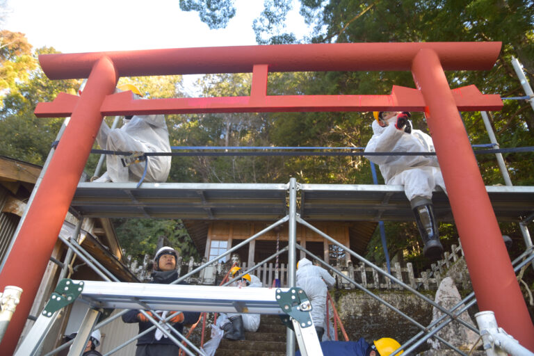 Nestled in a serene landscape of terraced rice fields and beautiful, clear streams, the Hirai district of Kozagawa Town, where the Wakayama Experimental Forest is located, faces the serious realities of aging and depopulation that quietly permeate the area. With 69 residents in 2024 and an average age of 73, the Hirai district represents what is known as a “marginal community”—a rural area where more than half the population is 65 or older. Students interacted with residents through various life-related experiences, including harvesting hassaku oranges, repainting a shrine torii gate, pruning yuzu trees, and helping residents build chicken coops.