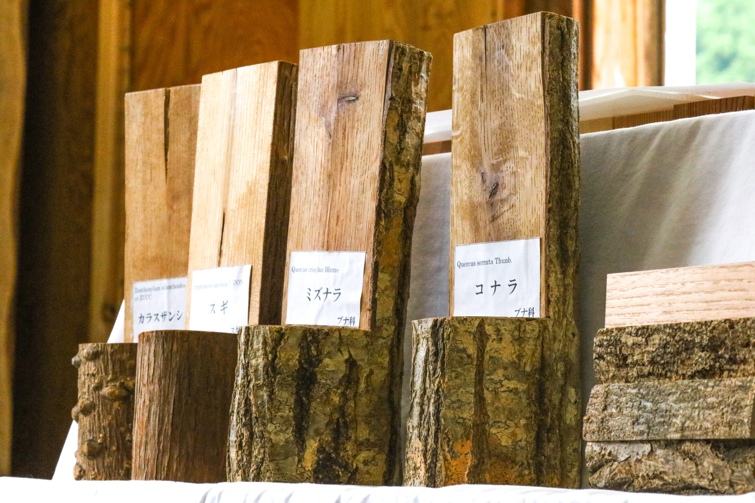 Another distinctive feature of the Wakayama Experimental Forest is its wooden administrative building, constructed in 1927. This two-story Western-style building, with its striking blue roof and white walls, was designated as a National Tangible Cultural Property in 2013. Equipped with lecture rooms and accommodation facilities, it serves as a base of operations for researchers and students. The building’s reference room displays insect specimens and stuffed animal specimens of species that inhabit the forest, as well as specimens of various trees. With leaves, branches, bark, and fruits that comprehensively represent the region’s vegetation, the building serves as a hub that helps pass forest knowledge on to future generations, utilized not only for student educational training but also for experiential learning programs for elementary students and the general public.