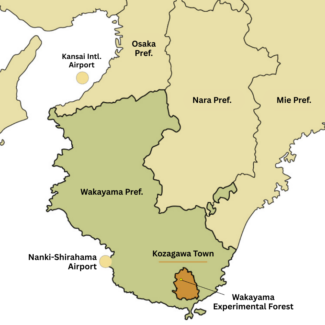Located in the Hirai district of Kozagawa Town, in the southern part of the Kii Peninsula, approximately 1,800 kilometers southwest of the Sapporo campus, Hokkaido University’s Wakayama Experimental Forest is the only one among the university’s seven research forests that lies outside Hokkaido. In the 1900s, when domestic demand for construction timber increased, the university called upon the National Governors’ Association to provide land for education and research concerning warm-temperature plantations of Japanese cedar, Japanese cypress, and other species. Wakayama Prefecture responded to this call, leading to the establishment of the experiment forest in 1925.