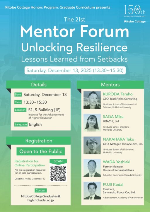 FinishedThe 20th Nitobe College Mentor Forum 2025Jun 15, 2025