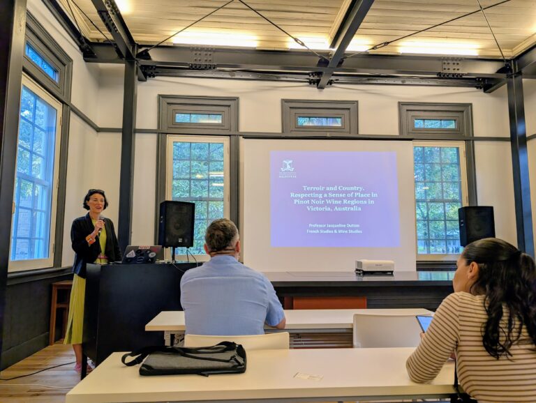 Professor Dutton is the Founding Director of the Pinot Noir Project, an international hub for knowledge exchange to explore the appeal and challenges of Pinot Noir both from cultural and scientific perspectives. She had curated international festivals in Australia, France, and Myanmar as an expert in French Studies and Gastronomy. She was accompanied by her UoM colleagues: Associate Professor Sigfredo Fuentes in Digital Agriculture and Food Sciences; Senior Lecturer Pangzhen Zhang in Food and Wine Science; and Dr. Claudia Gonzalez Viejo Duran in Food Engineering.