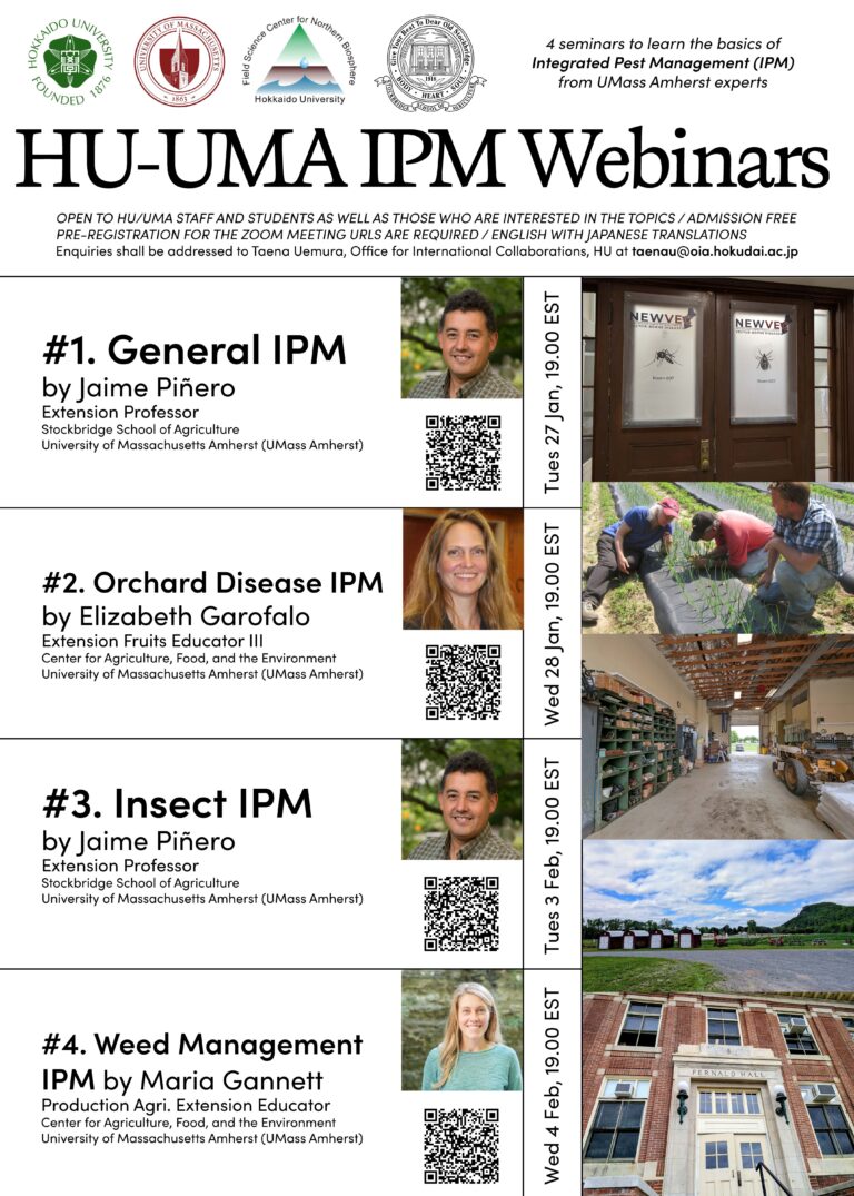 Hokkaido University (HU) delivered a four-day webinar series on Integrated Pest Management (IPM) together with its international strategic partner, the University of Massachusetts Amherst (UMA). The webinars were held on January 28-29, and February 4-5, 2026, and they have attracted 141 participants from academia and industry.